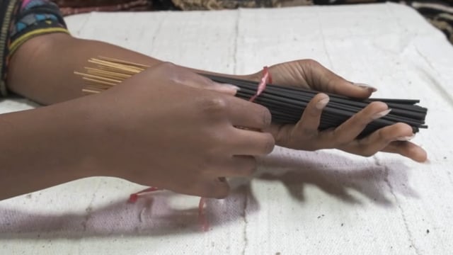 Incense sticks are 11" long. Each bundle is approximately 85-100 sticks. M-840